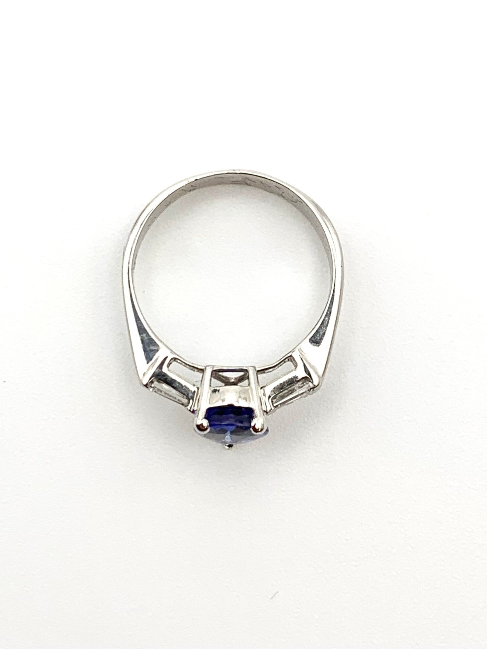 This stone shows a strong sapphire blue when viewed from the top. Lavender tones are visible from side angles