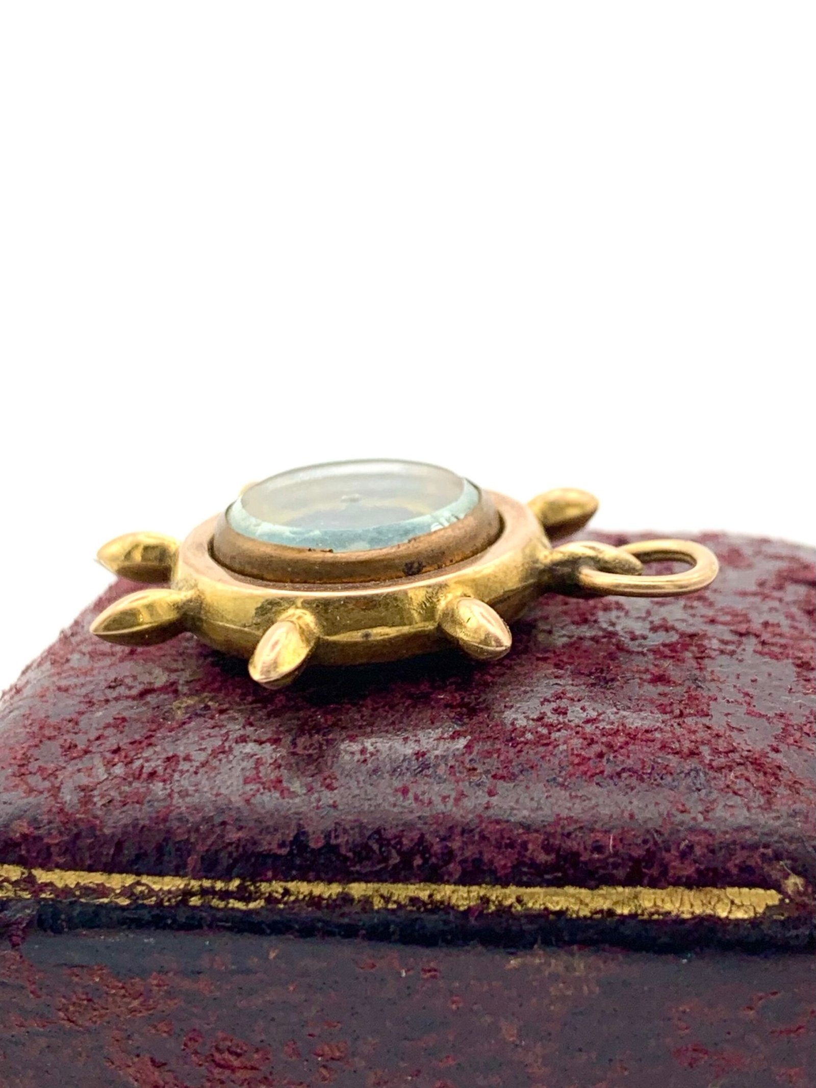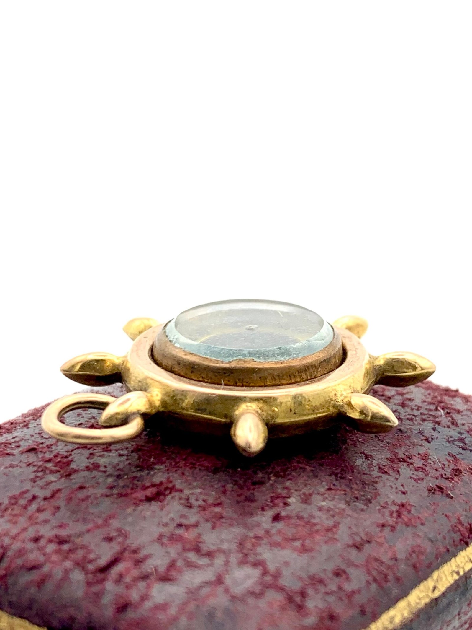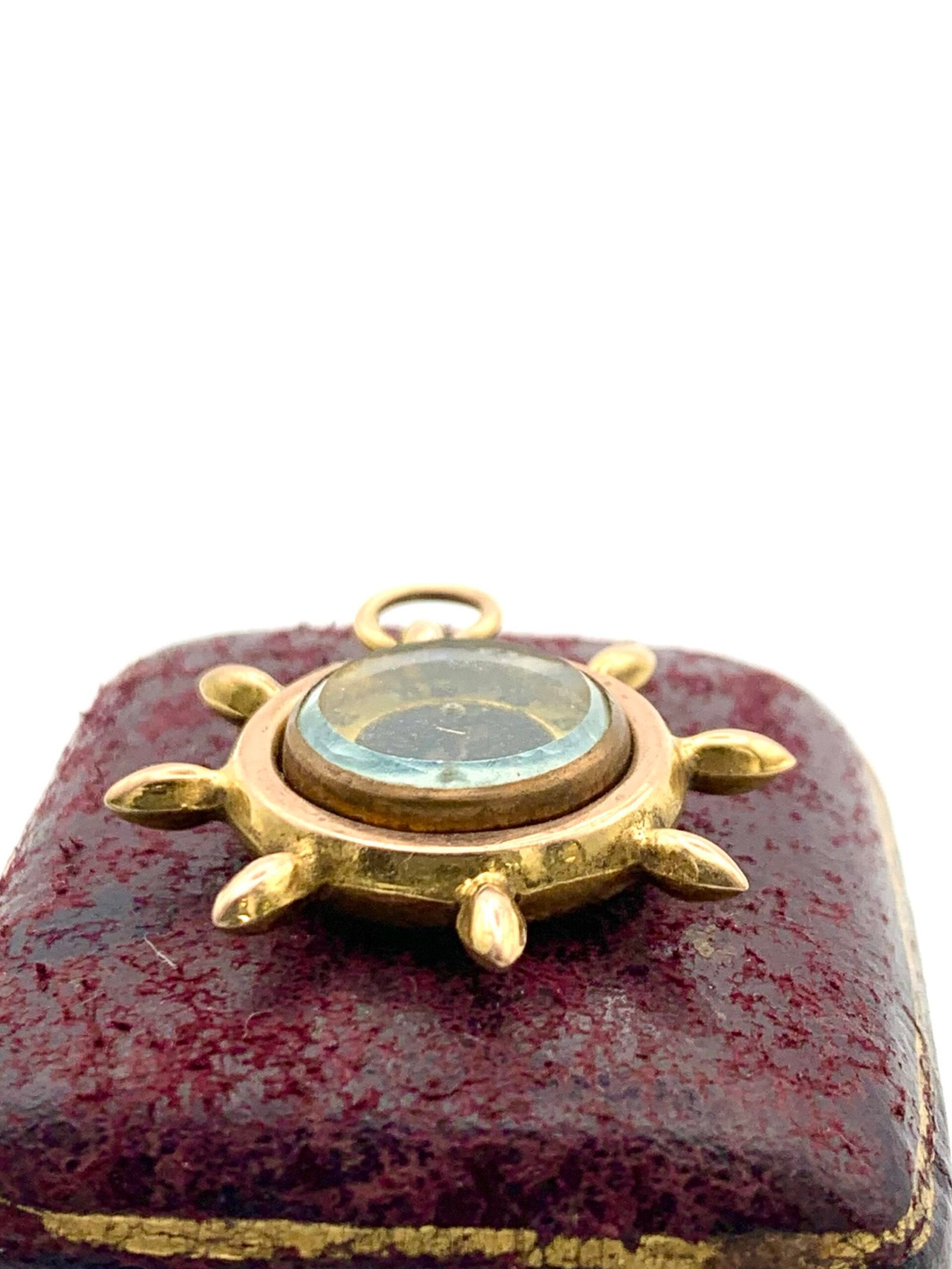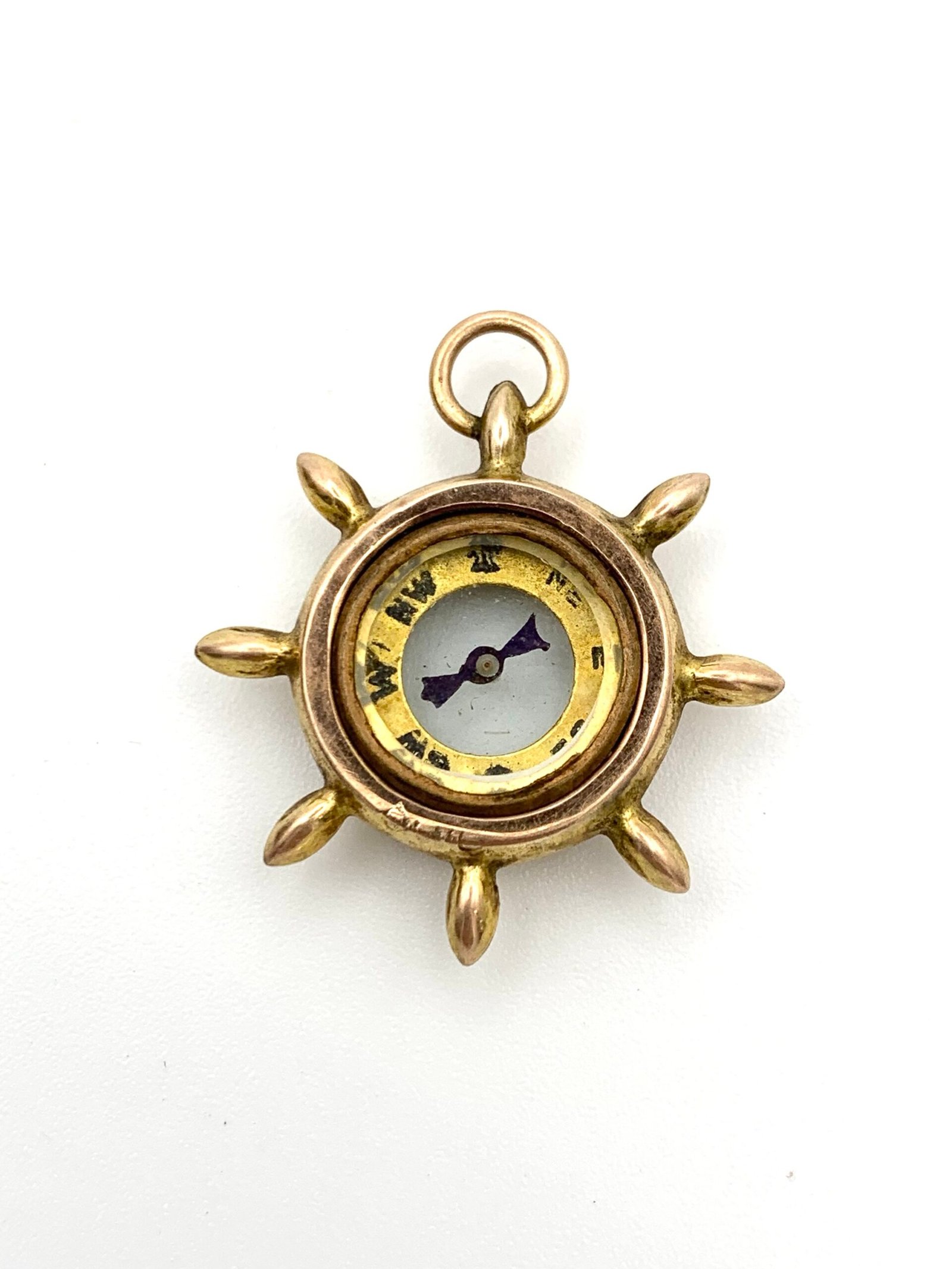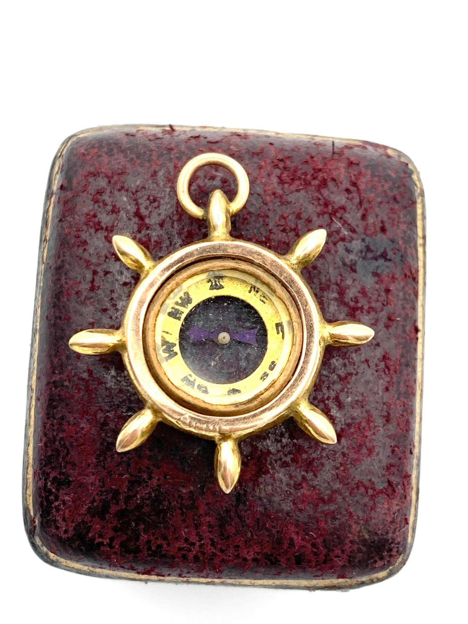 A fully working, magnetic compass, mounted within a 9ct, rose gold Ship’s Wheel frame