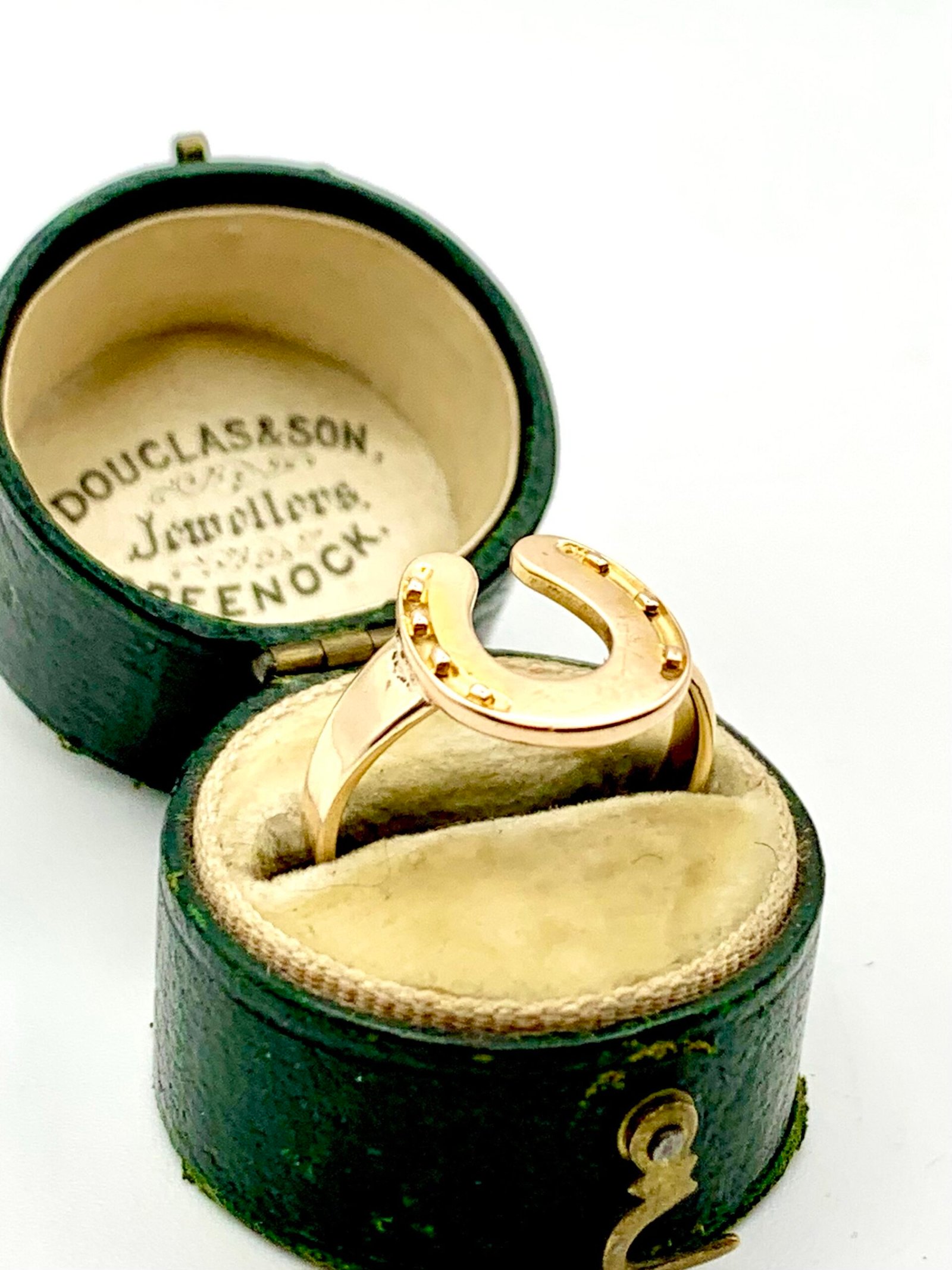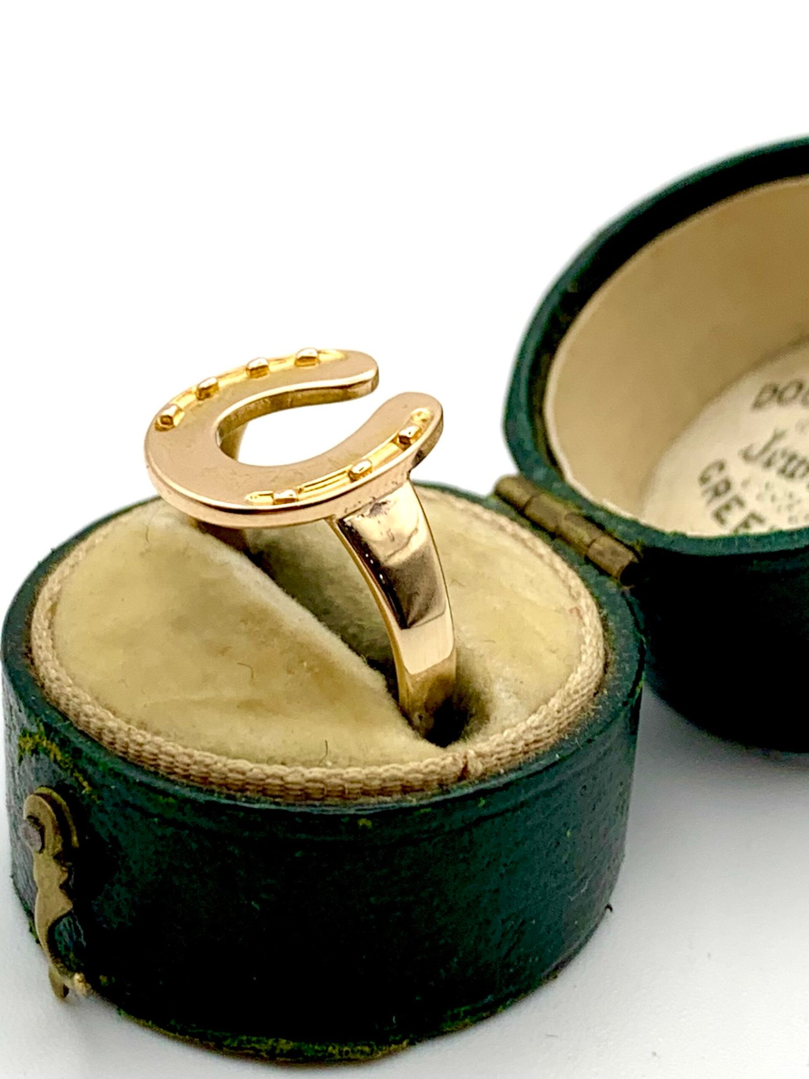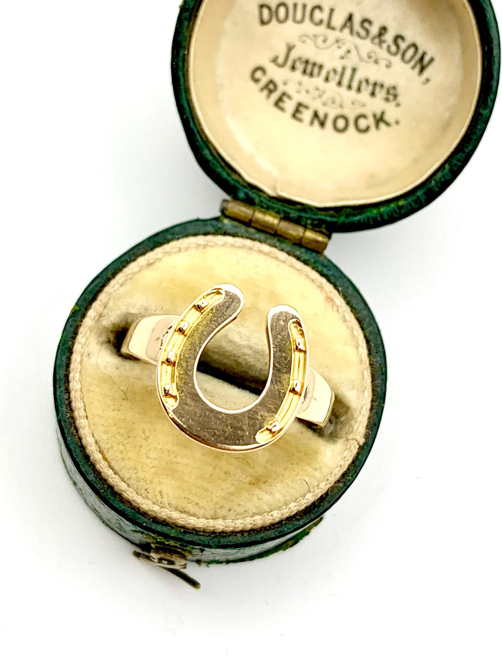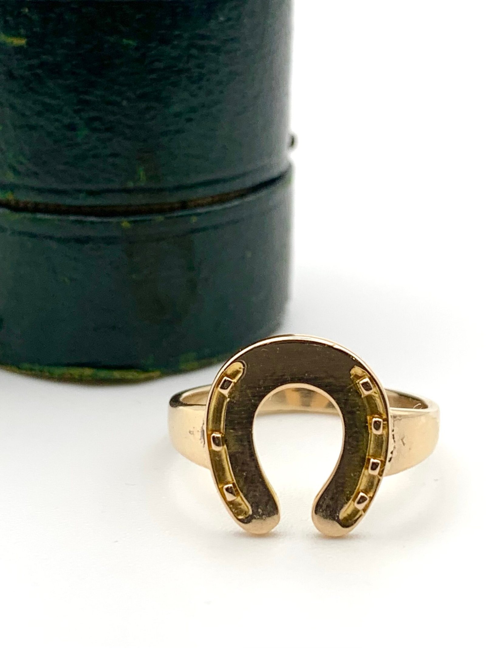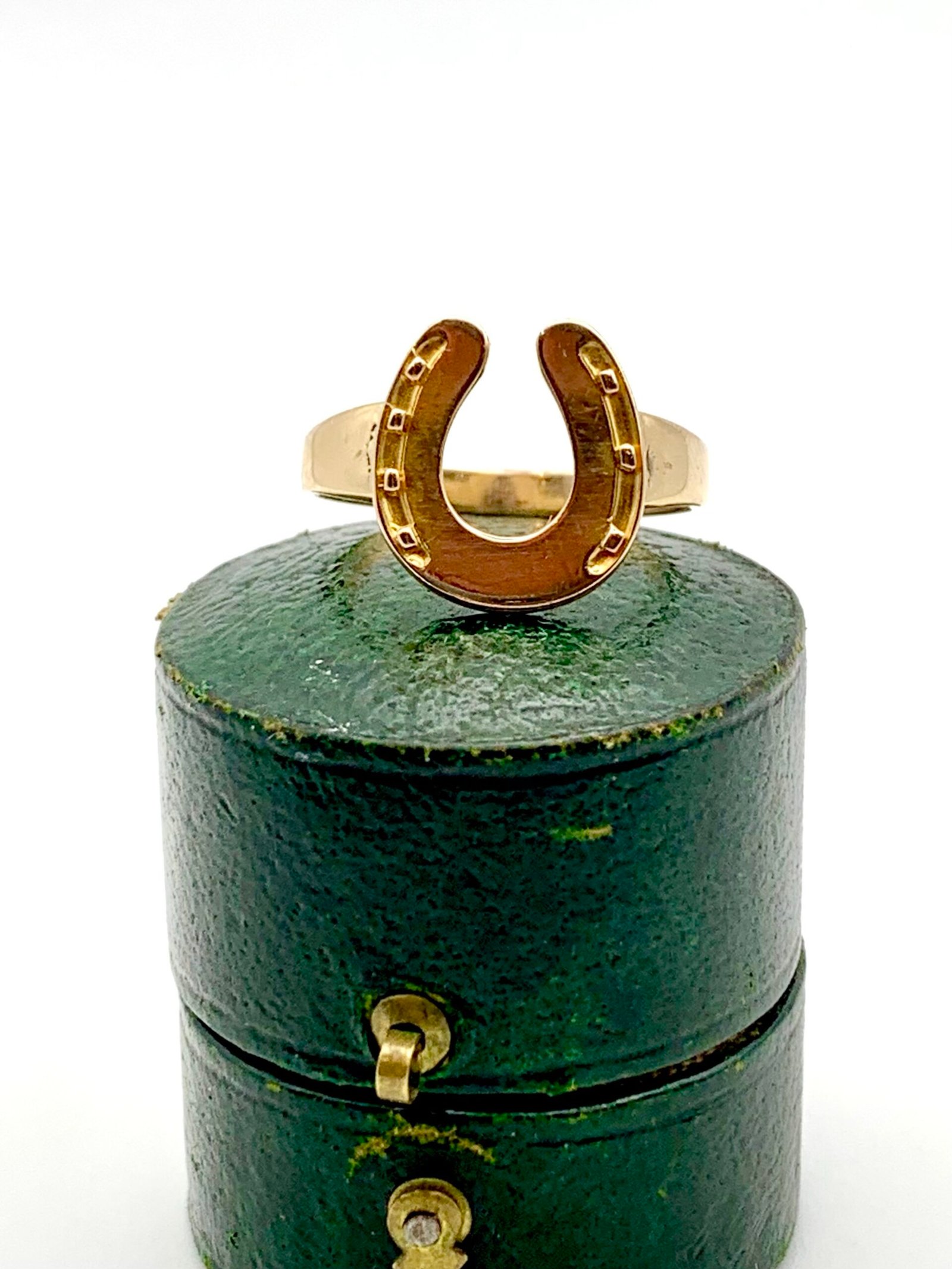 A beautifully wrought horseshoe, made c1900 from solid 15ct yellow gold