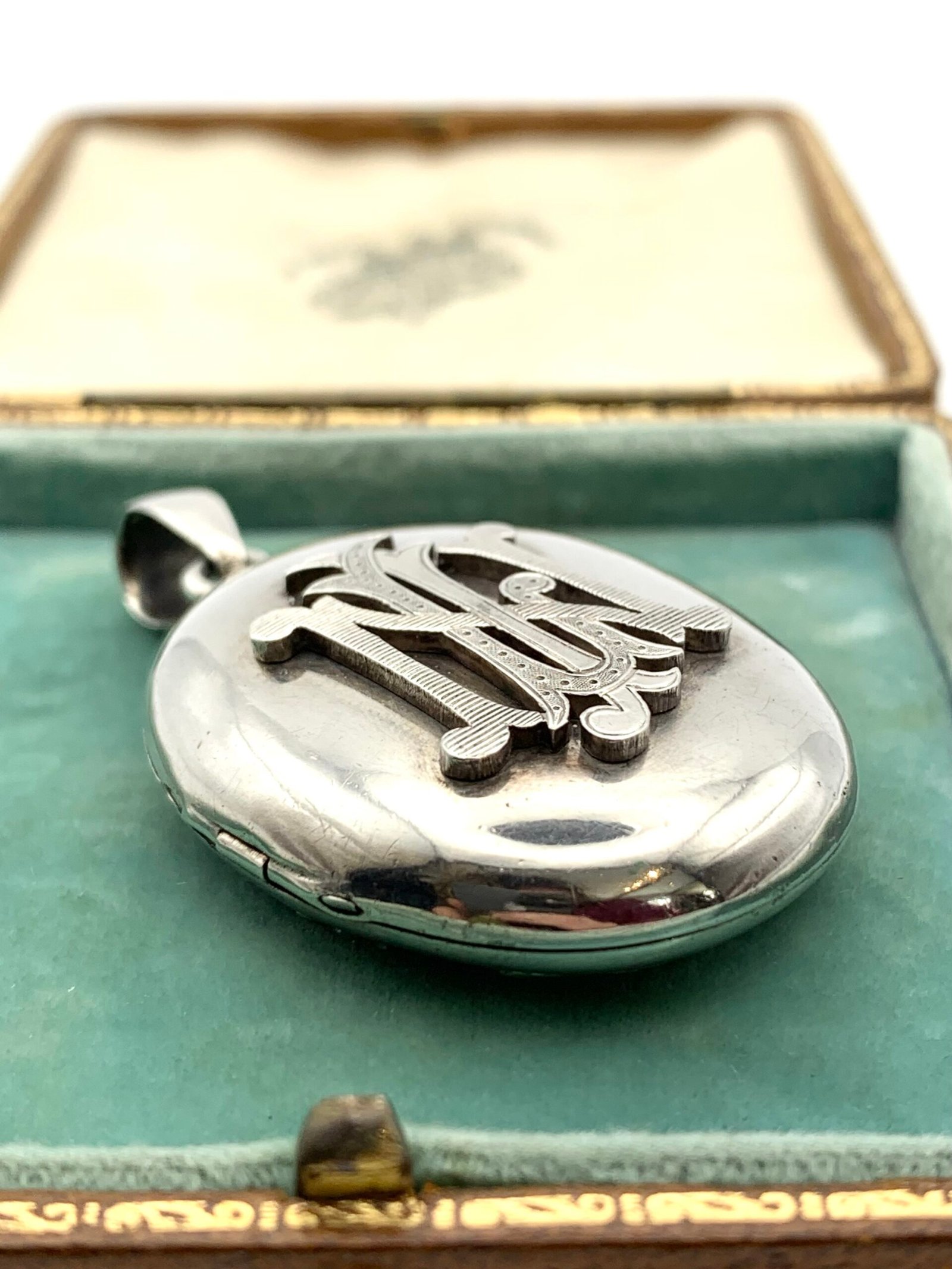 The back of the locket is mounted with a 3-D silver monogram. The letters are N, L and I/J
