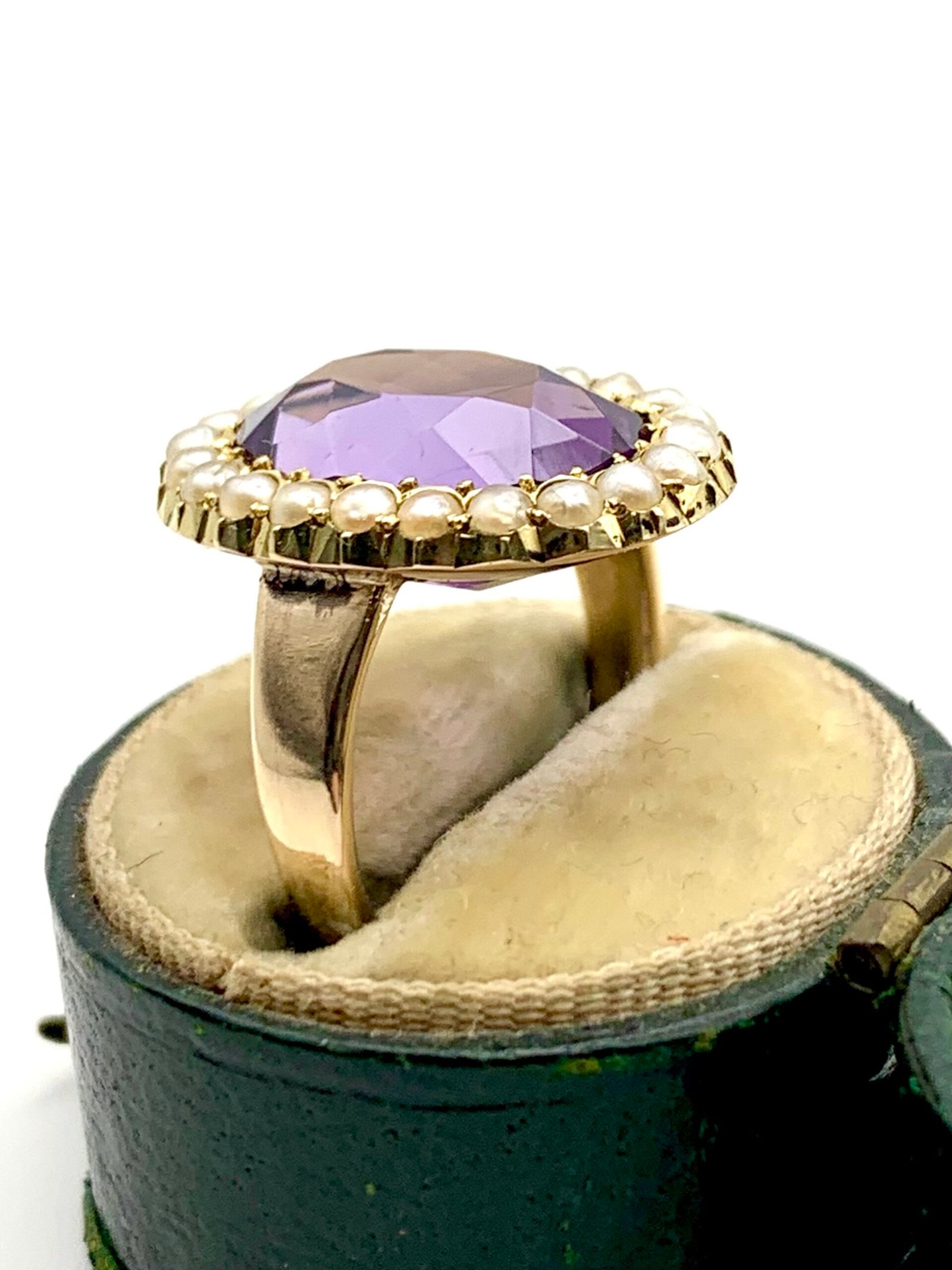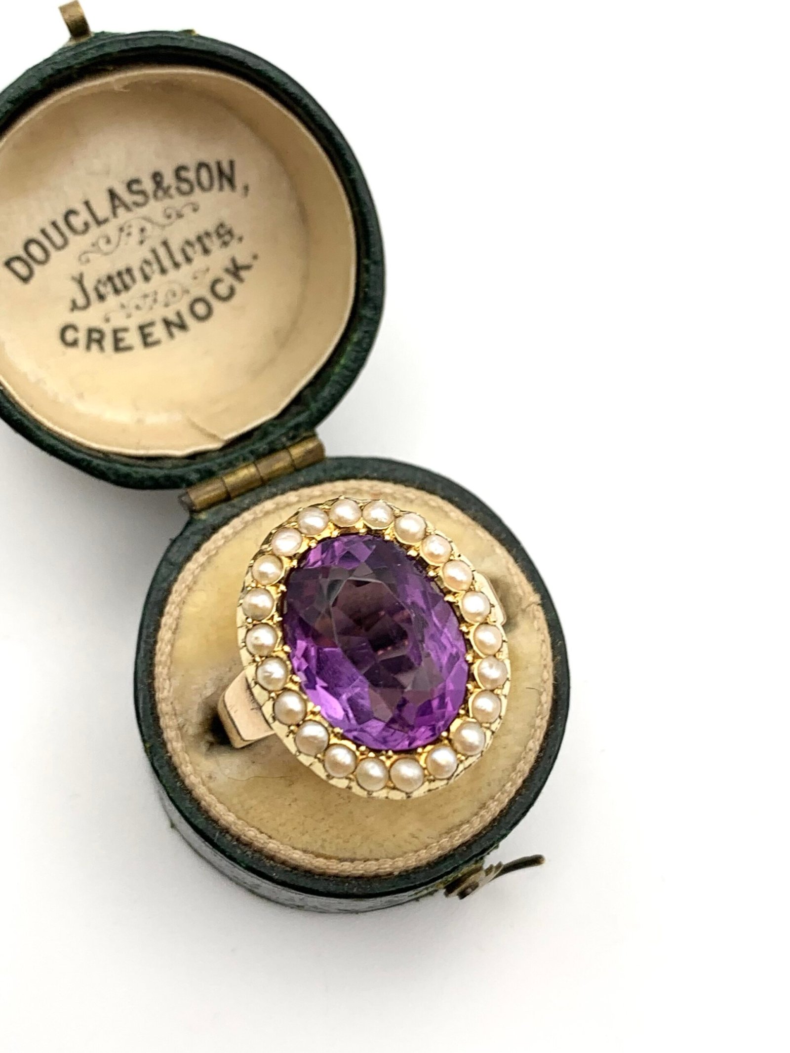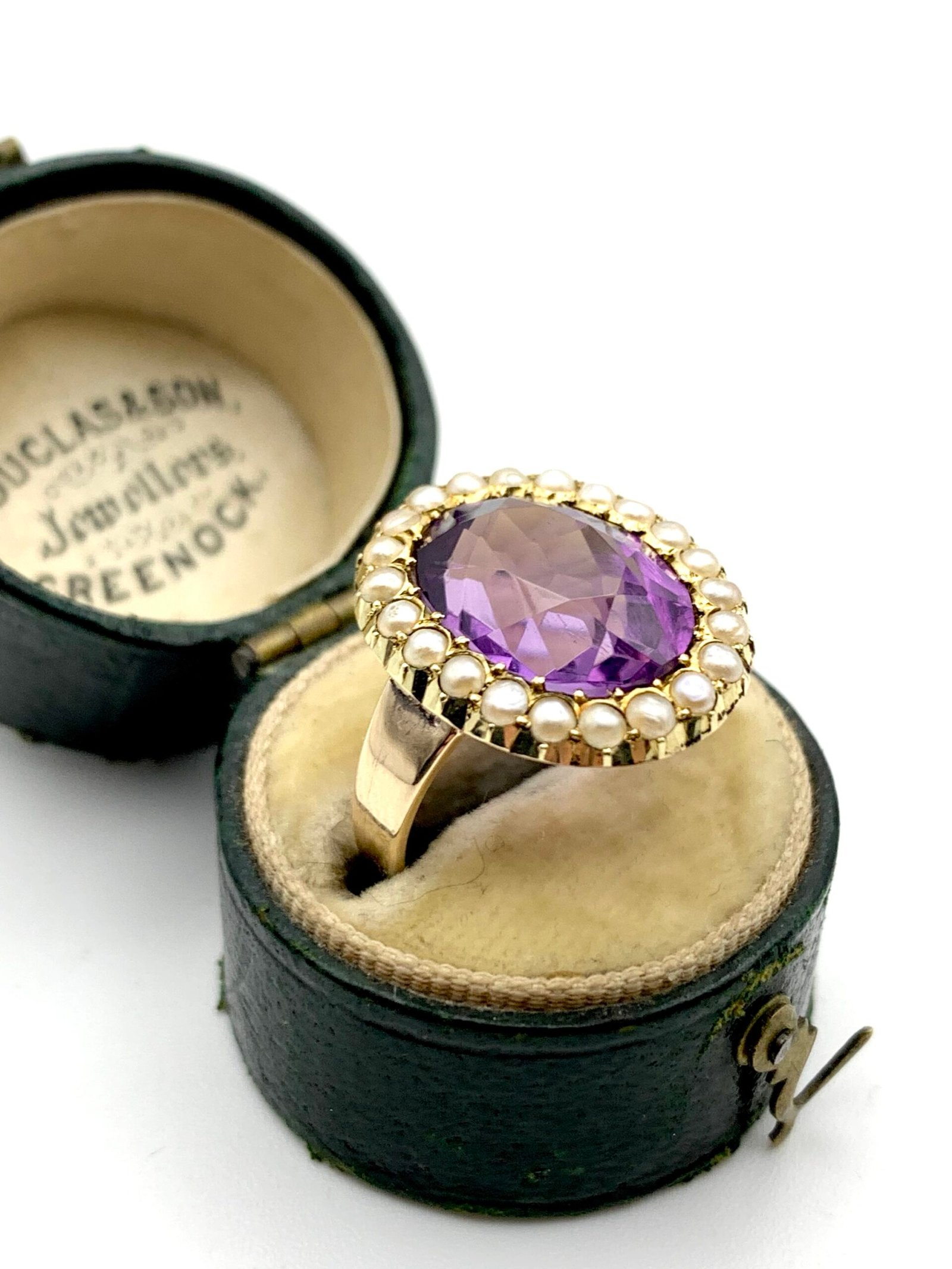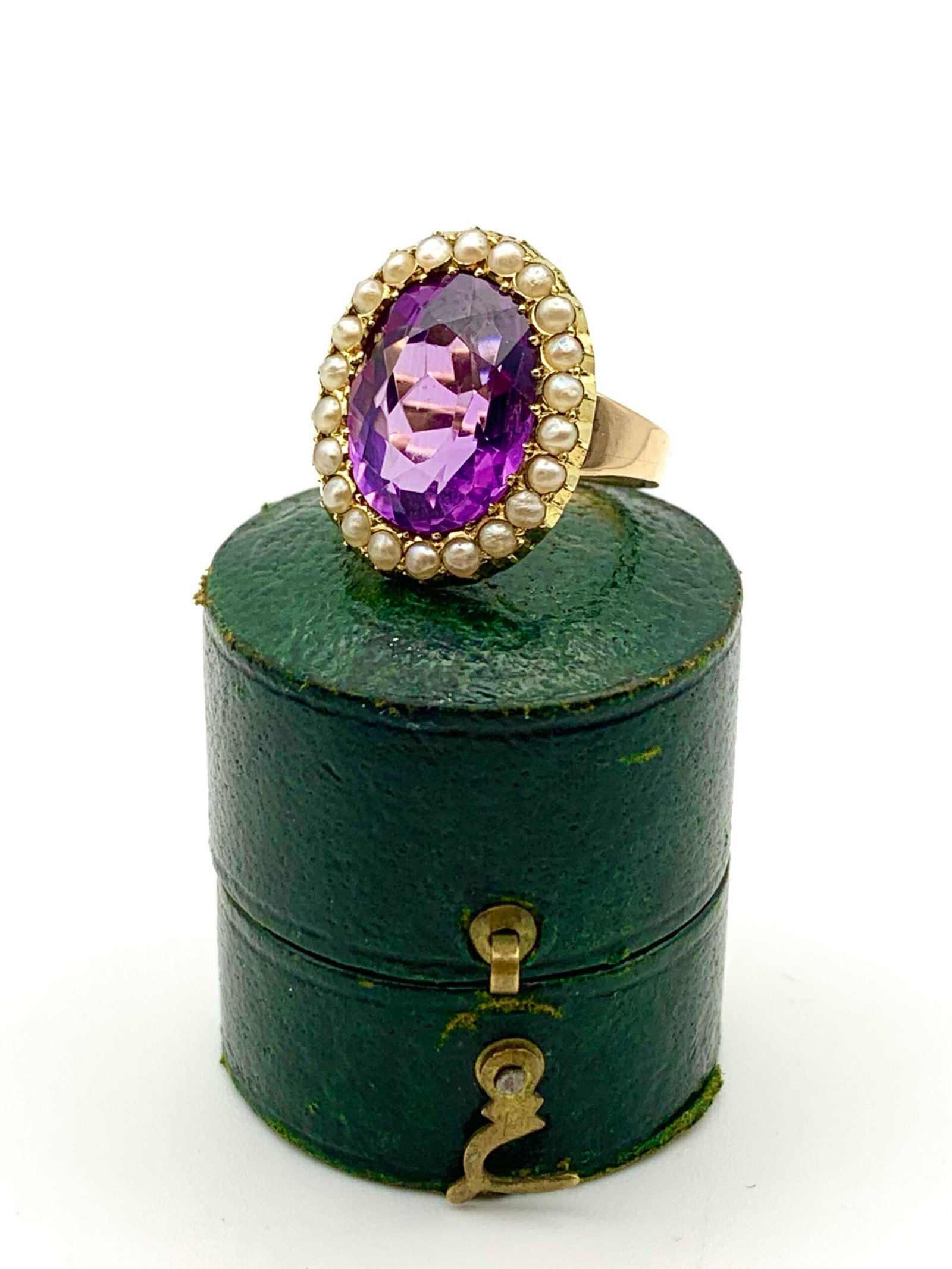 The perfect antique lace pin – c1840, 15ct gold with split natural pearls and a stunning, well saturated amethyst