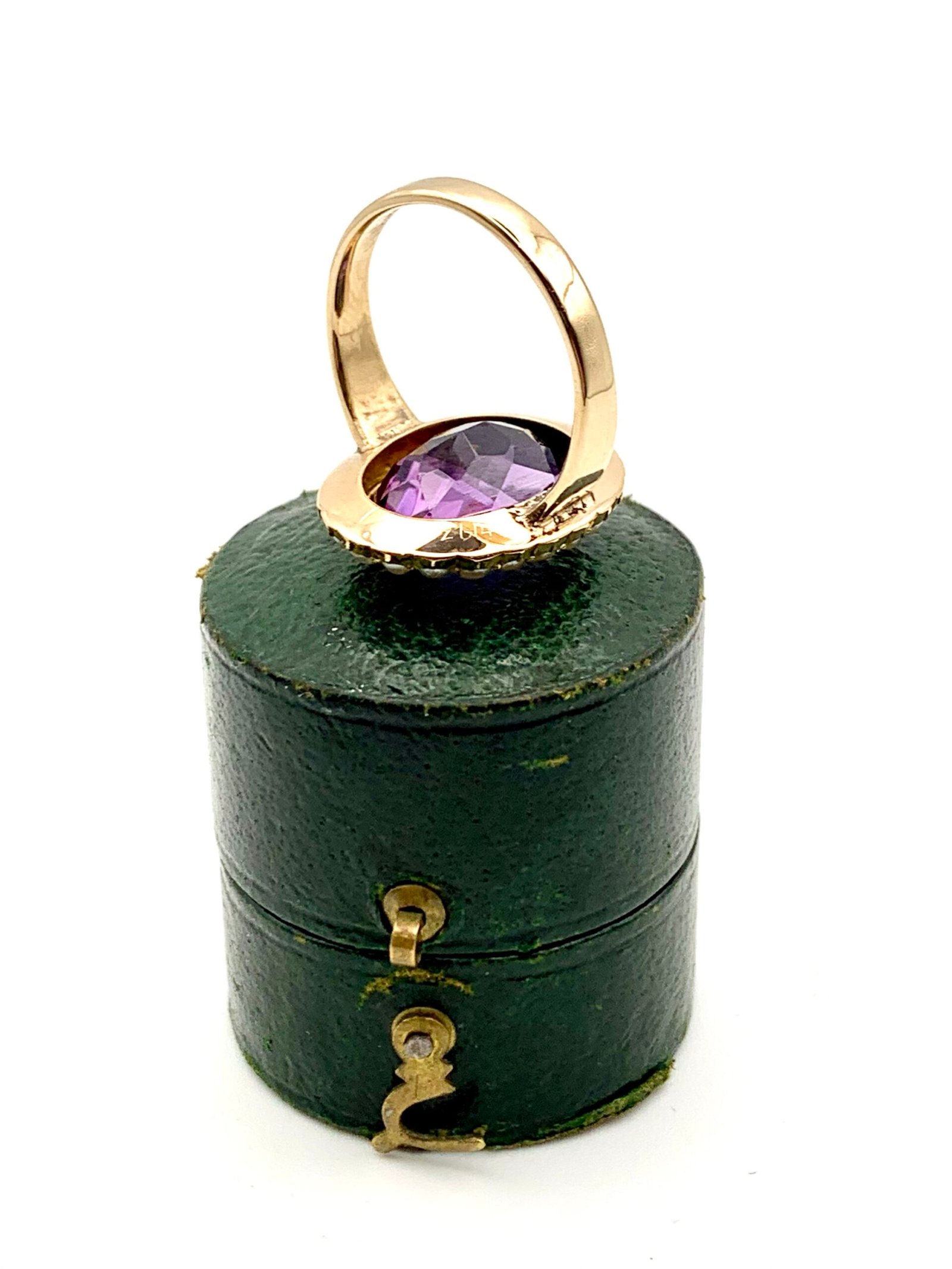 The amethyst is eye-clean with minor flaws visible under x10 magnification