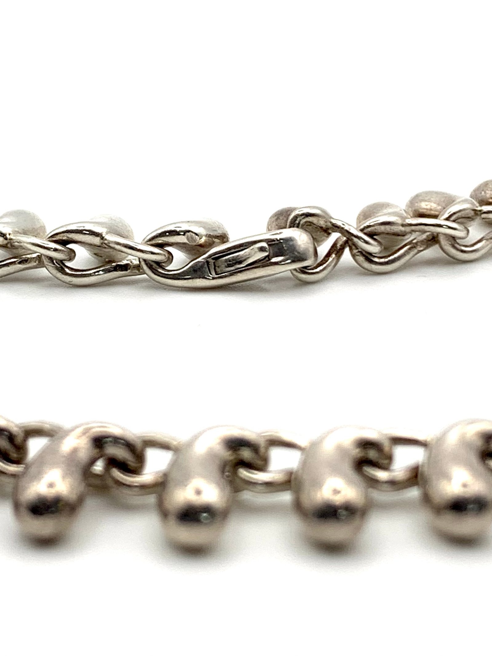 Made from solid sterling silver, the chain carries a full UK hallmark for Sheffield 2000, including the millennium mark