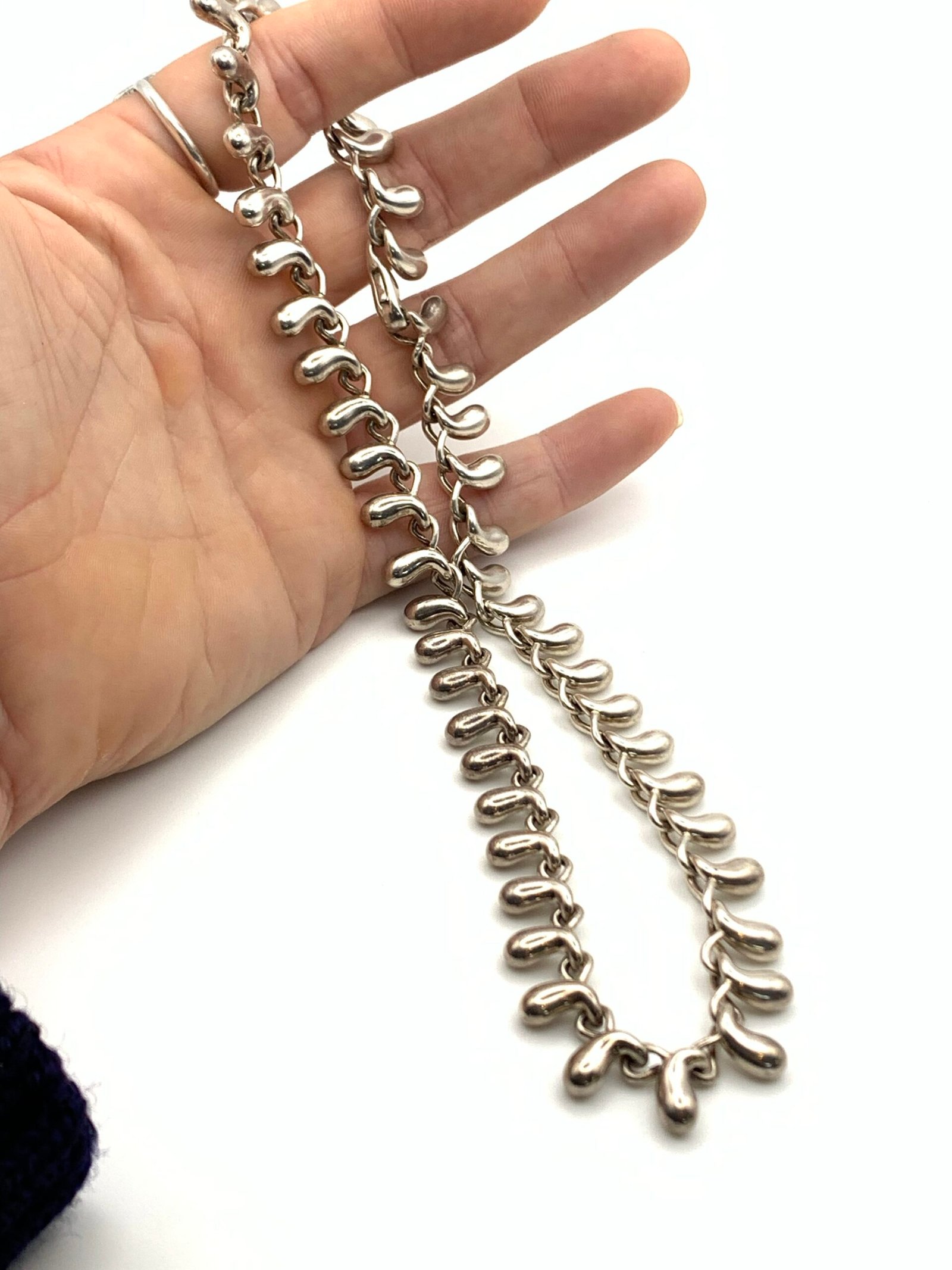 The necklace measures 17″ long and weighs 94g