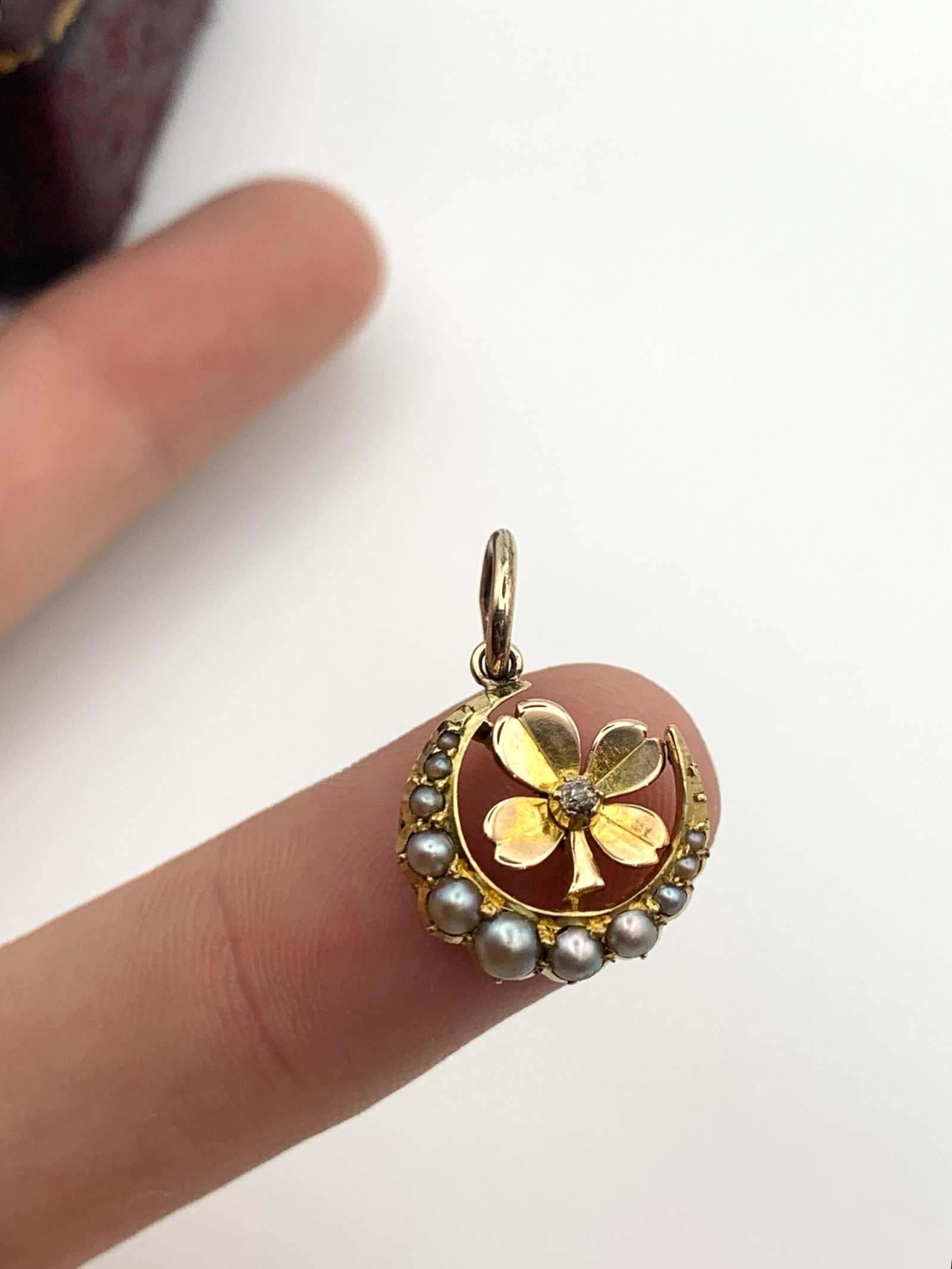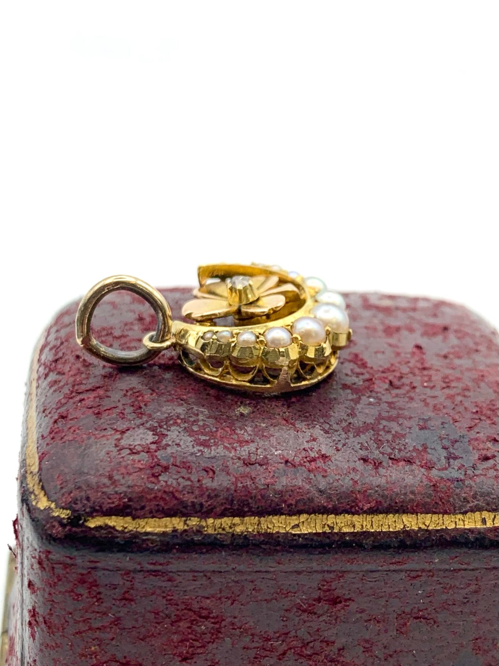 Made to an exceptionally high standard, with solid 18ct yellow gold, split natural pearls and an old-cut diamond