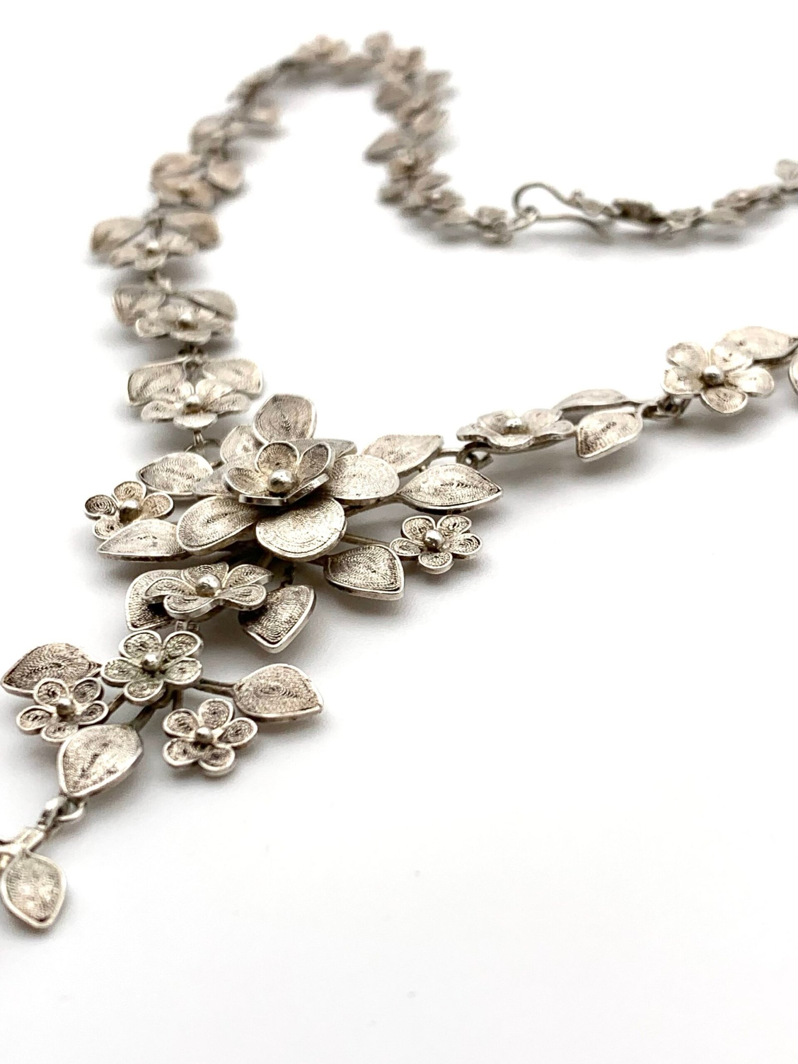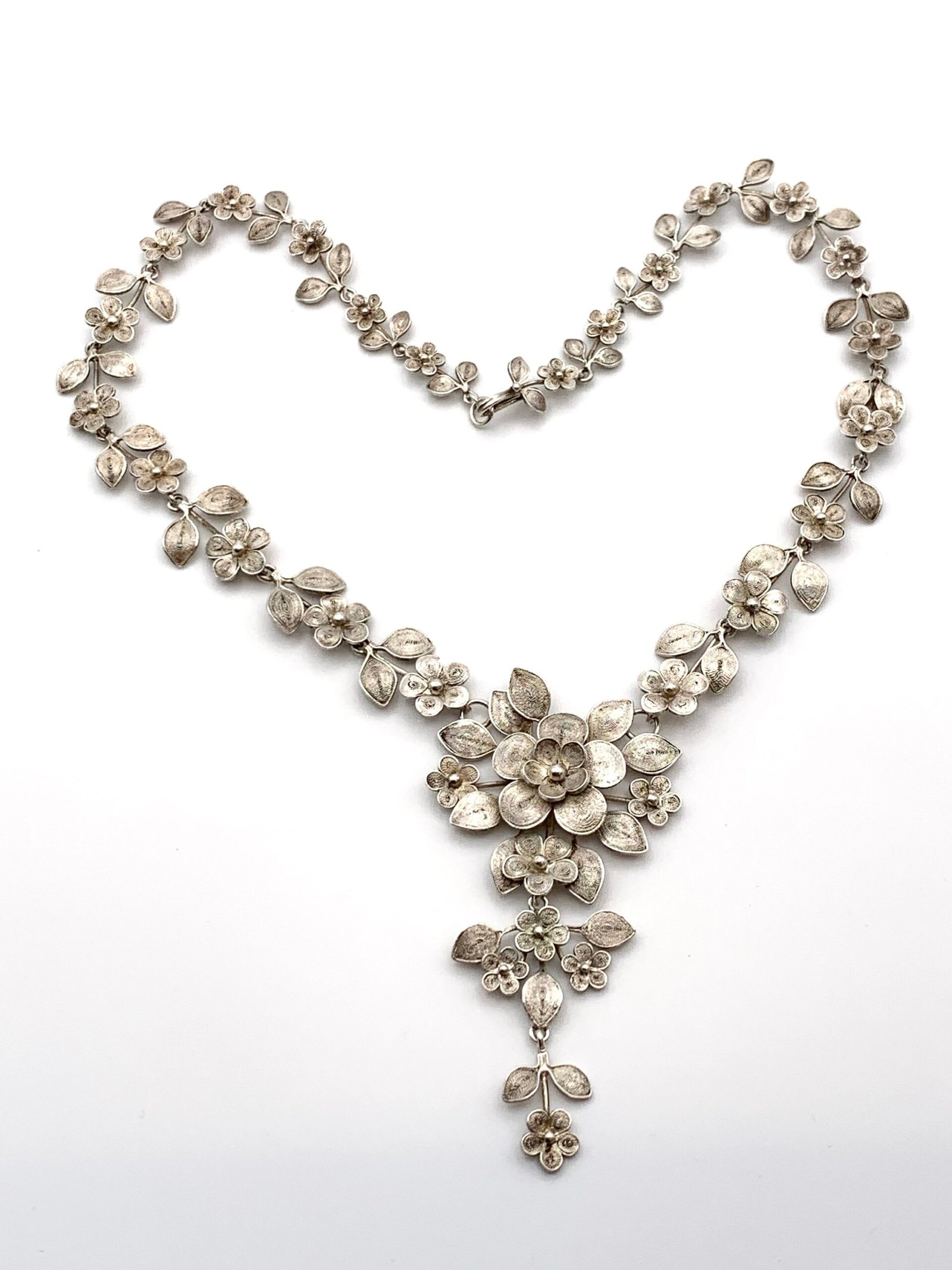 This is a beautiful, antique silver necklace