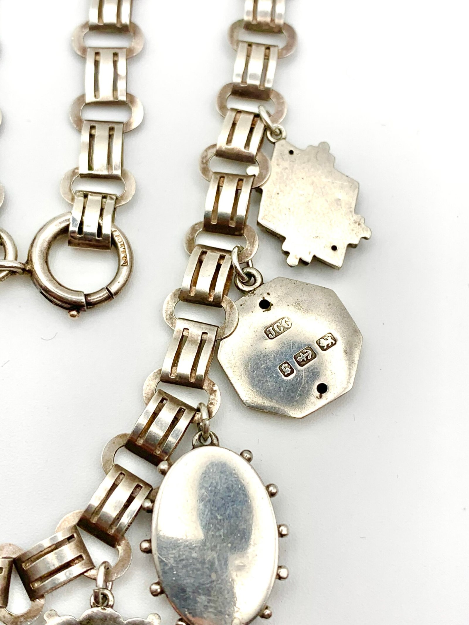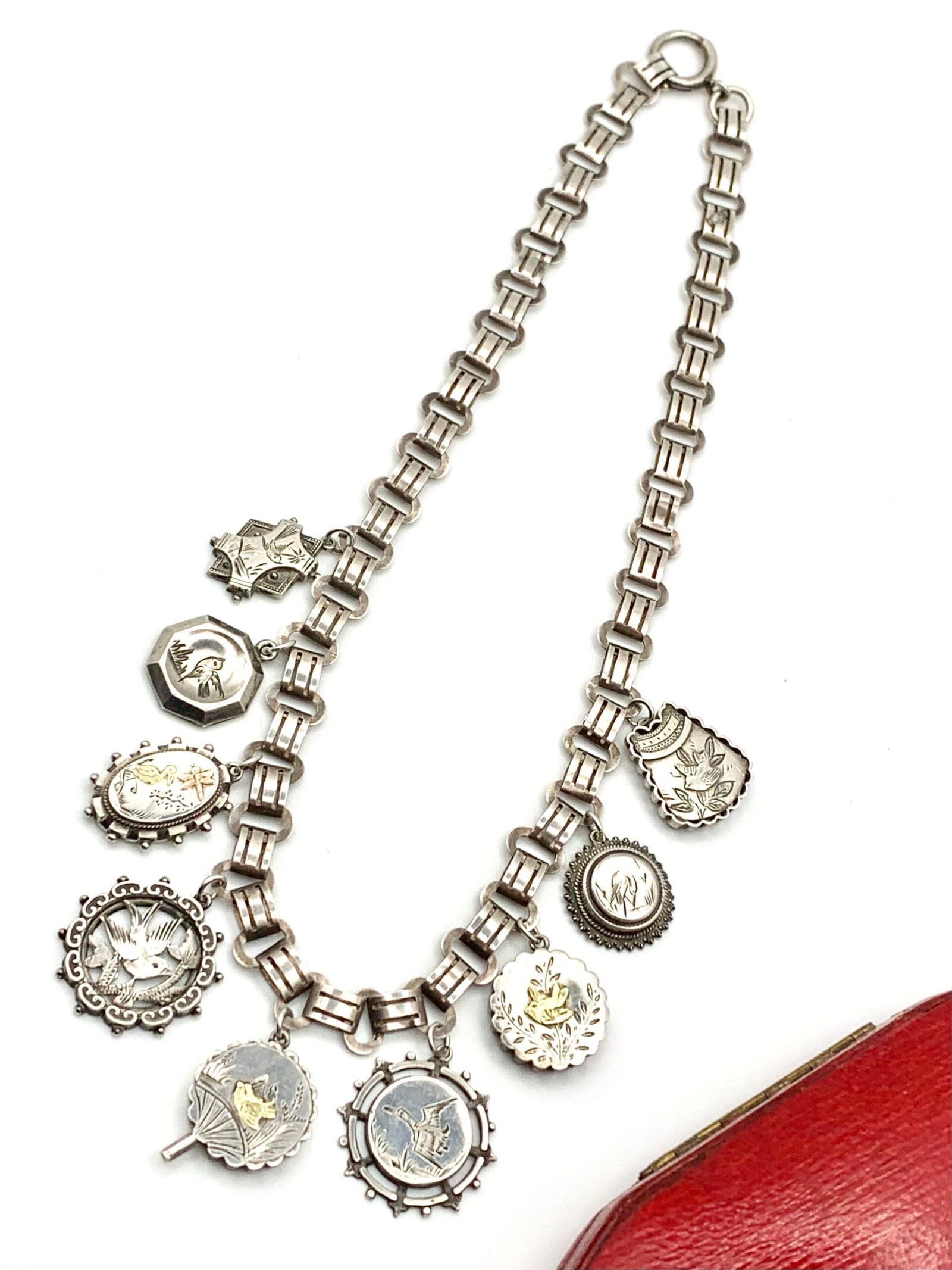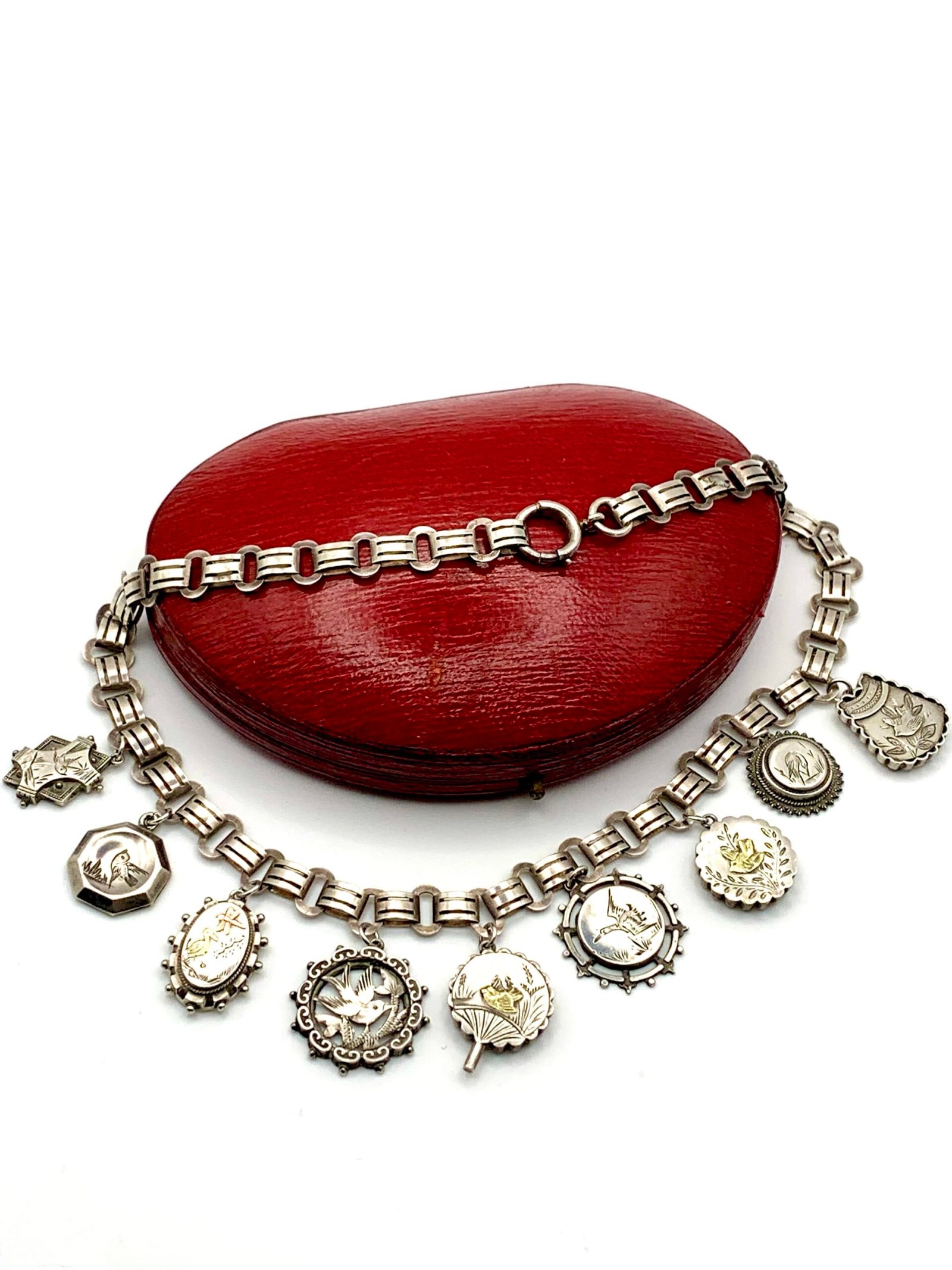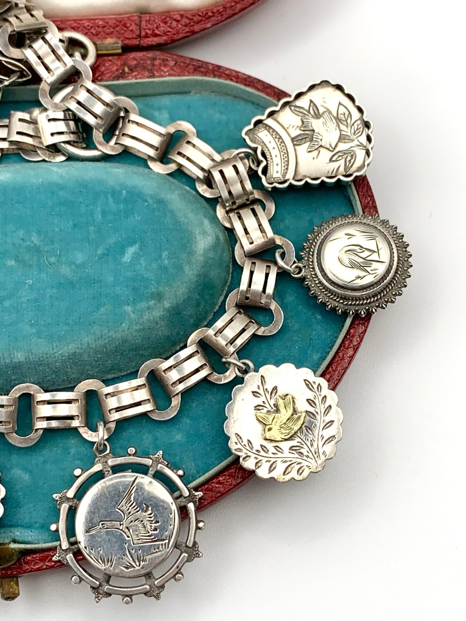 They hang from a 19th century silver locket collar that is remarkably modern in design