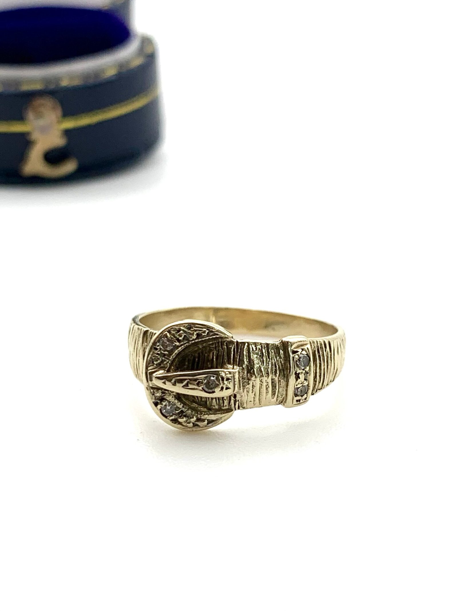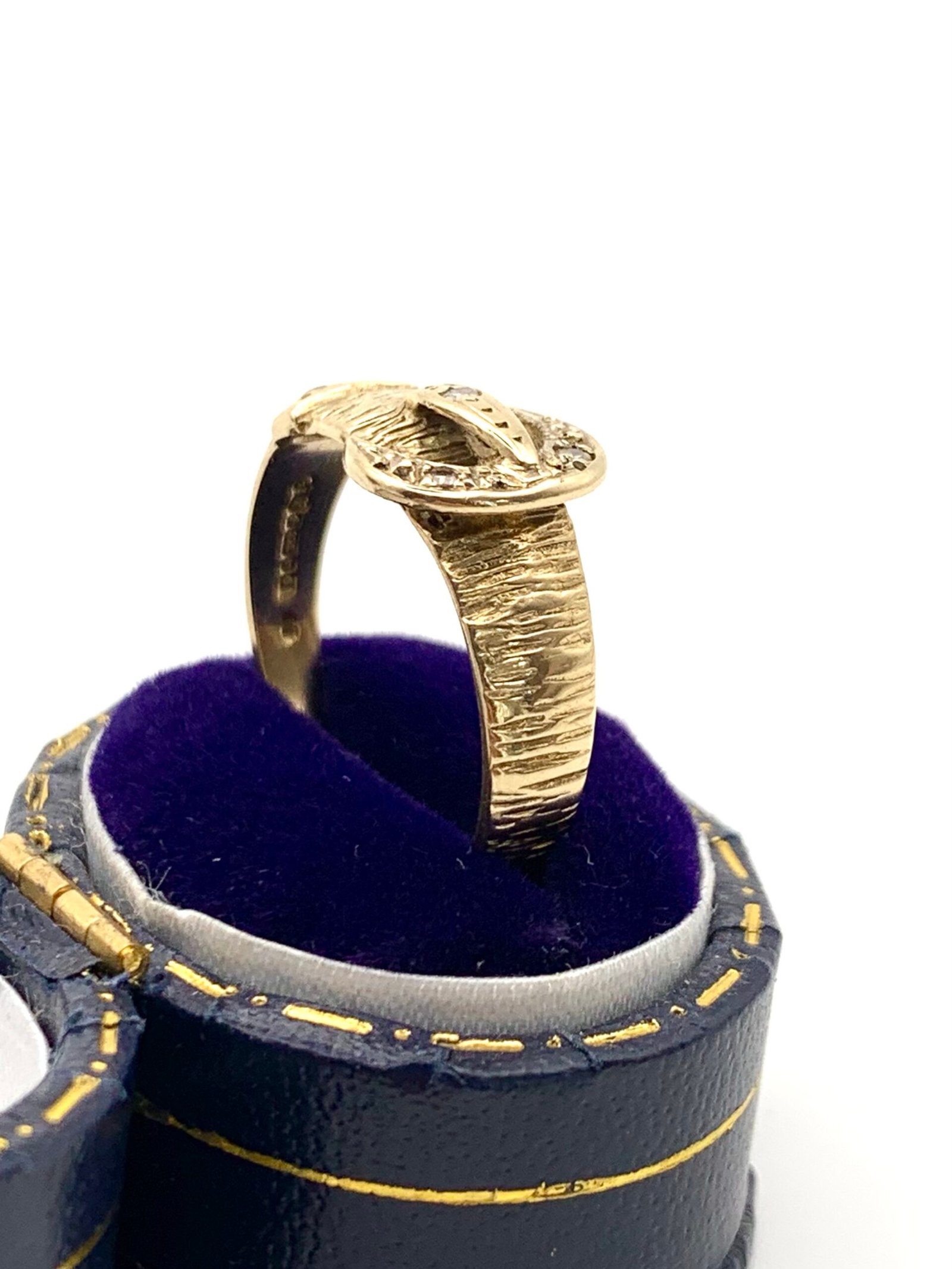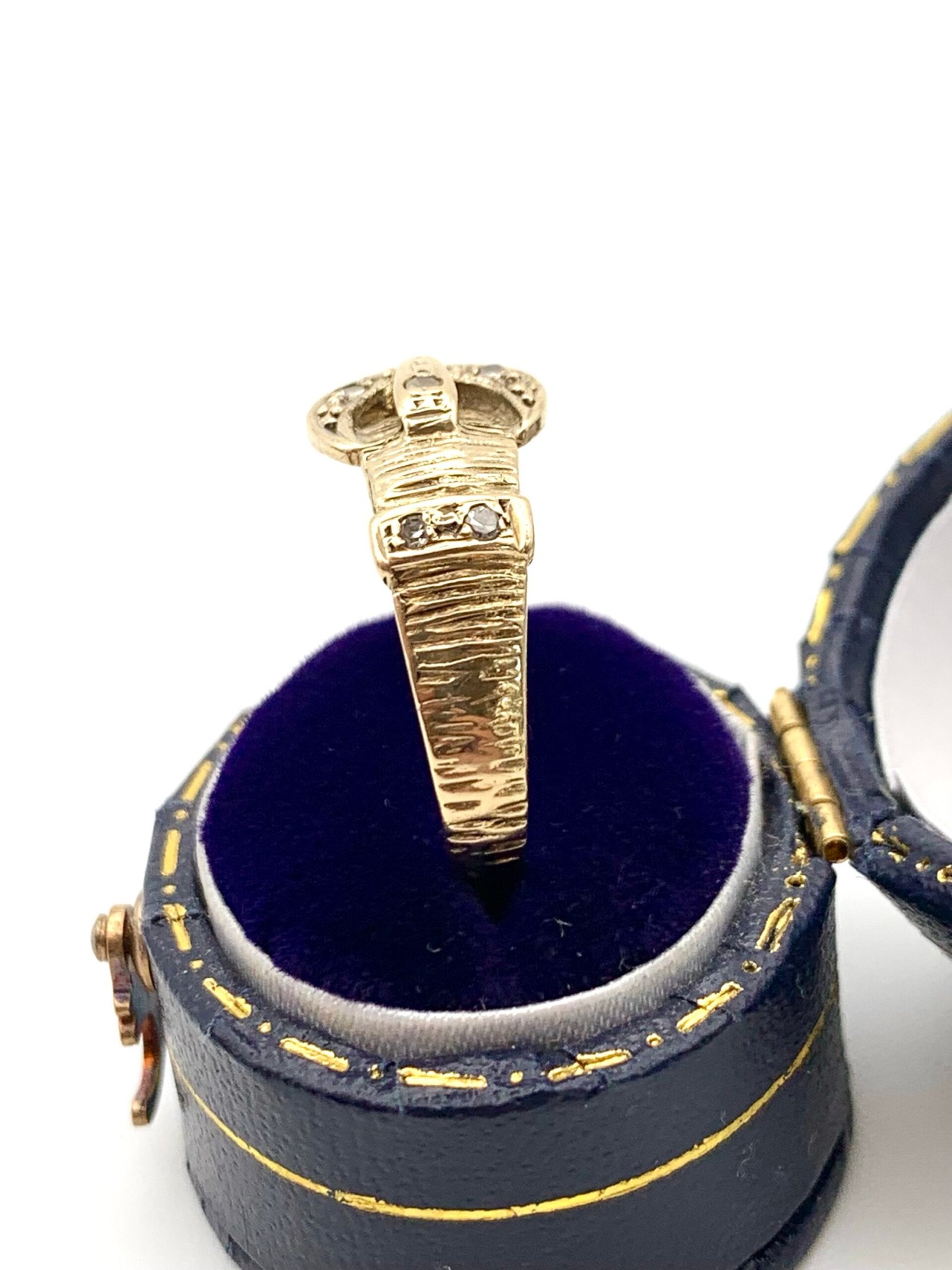 A cute vintage ring in solid, 9ct yellow gold, set with natural diamonds