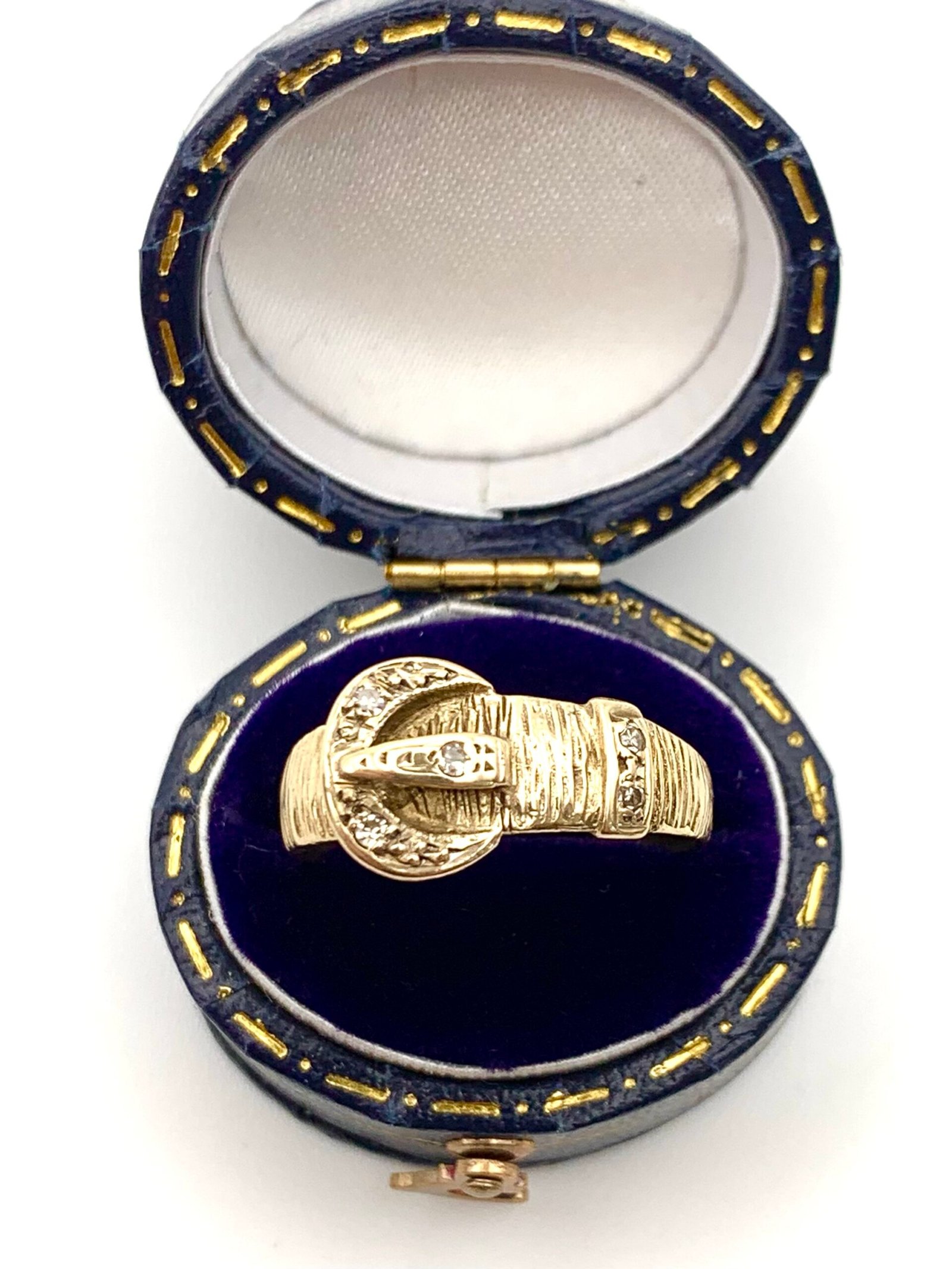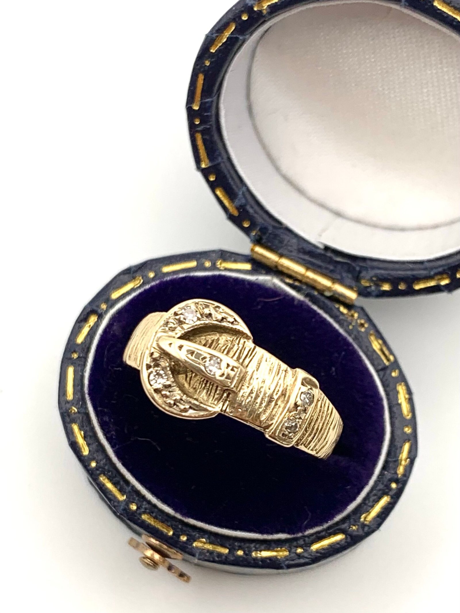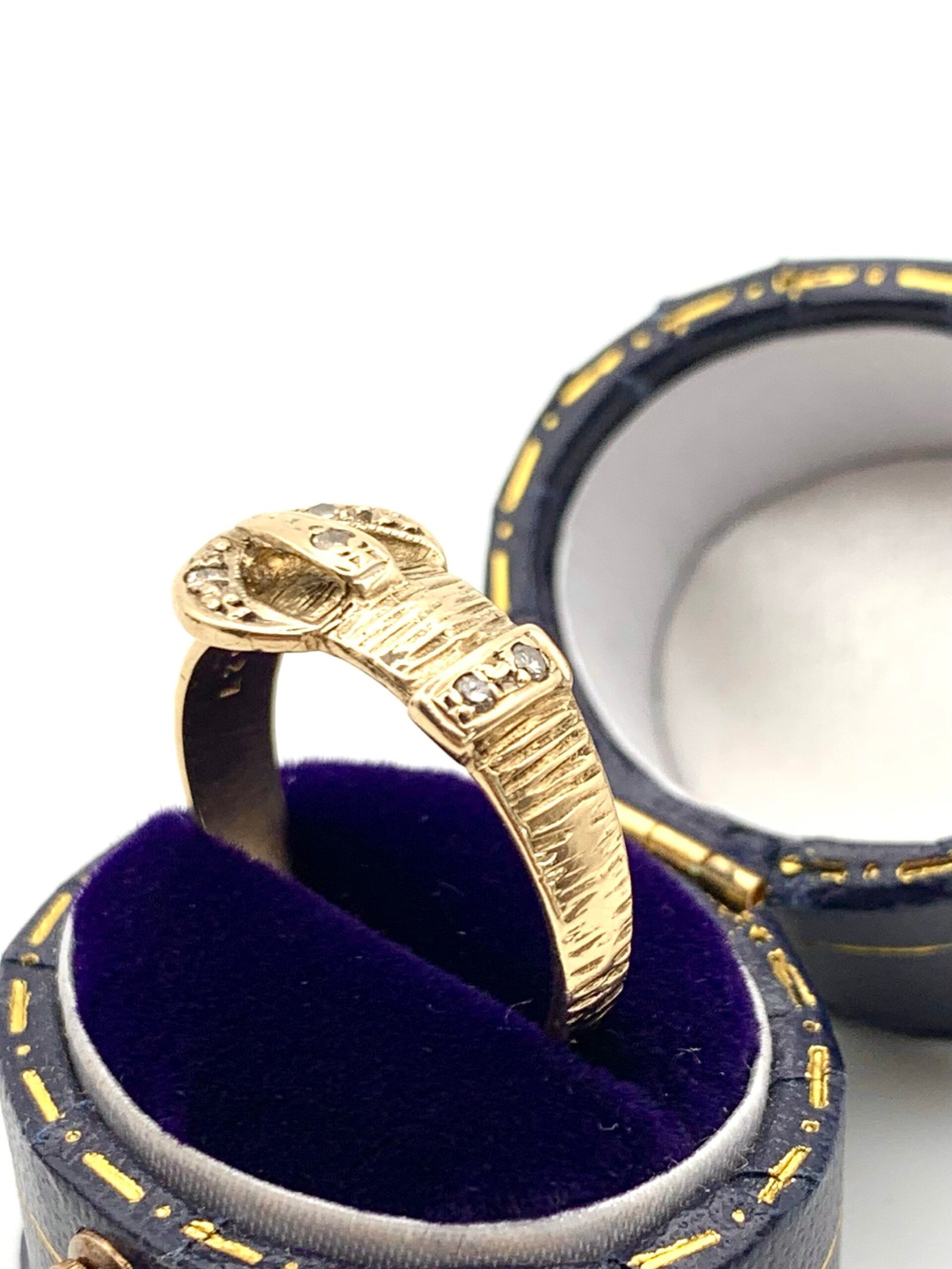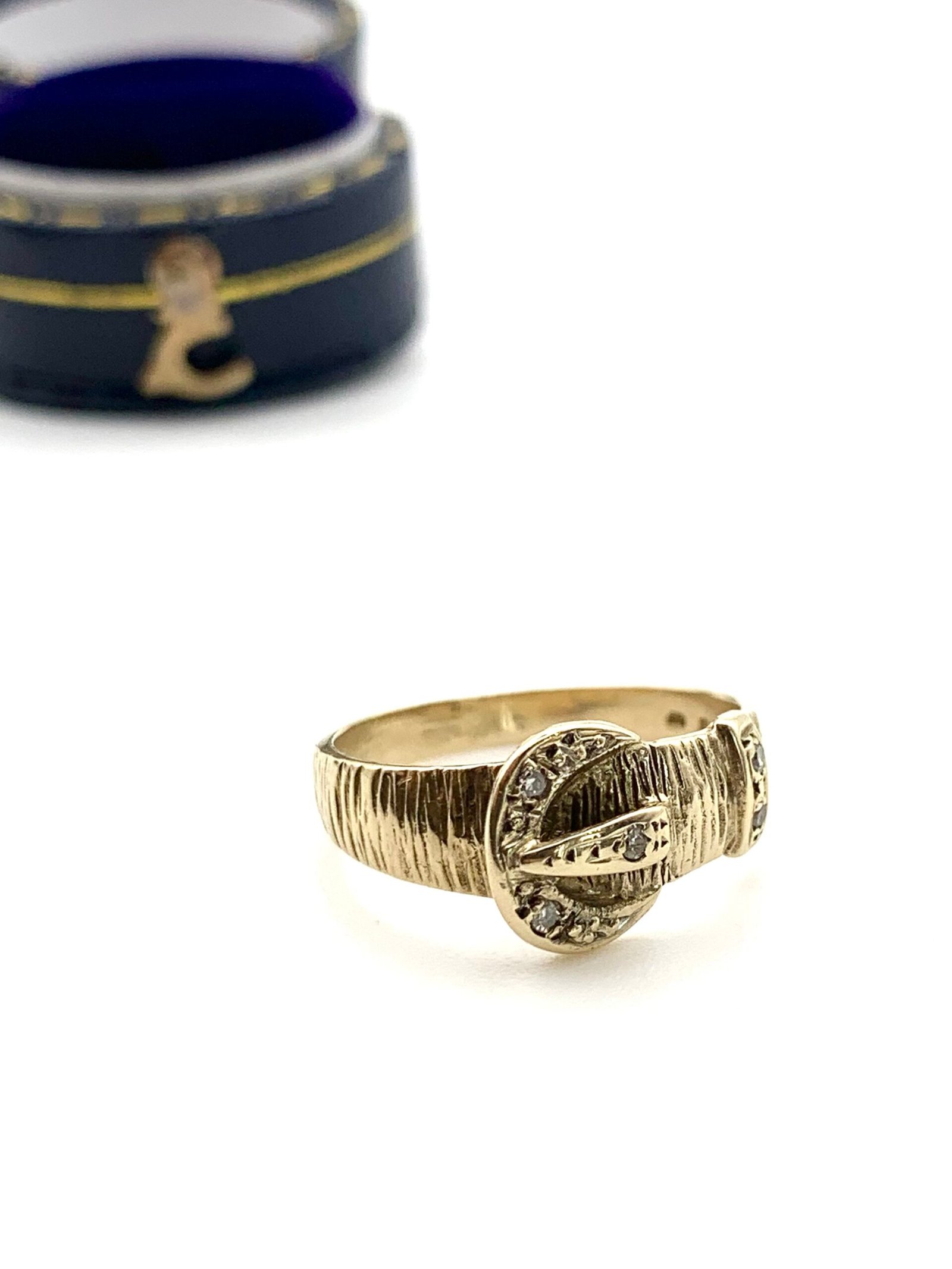 A cute vintage ring in solid, 9ct yellow gold, set with natural diamonds