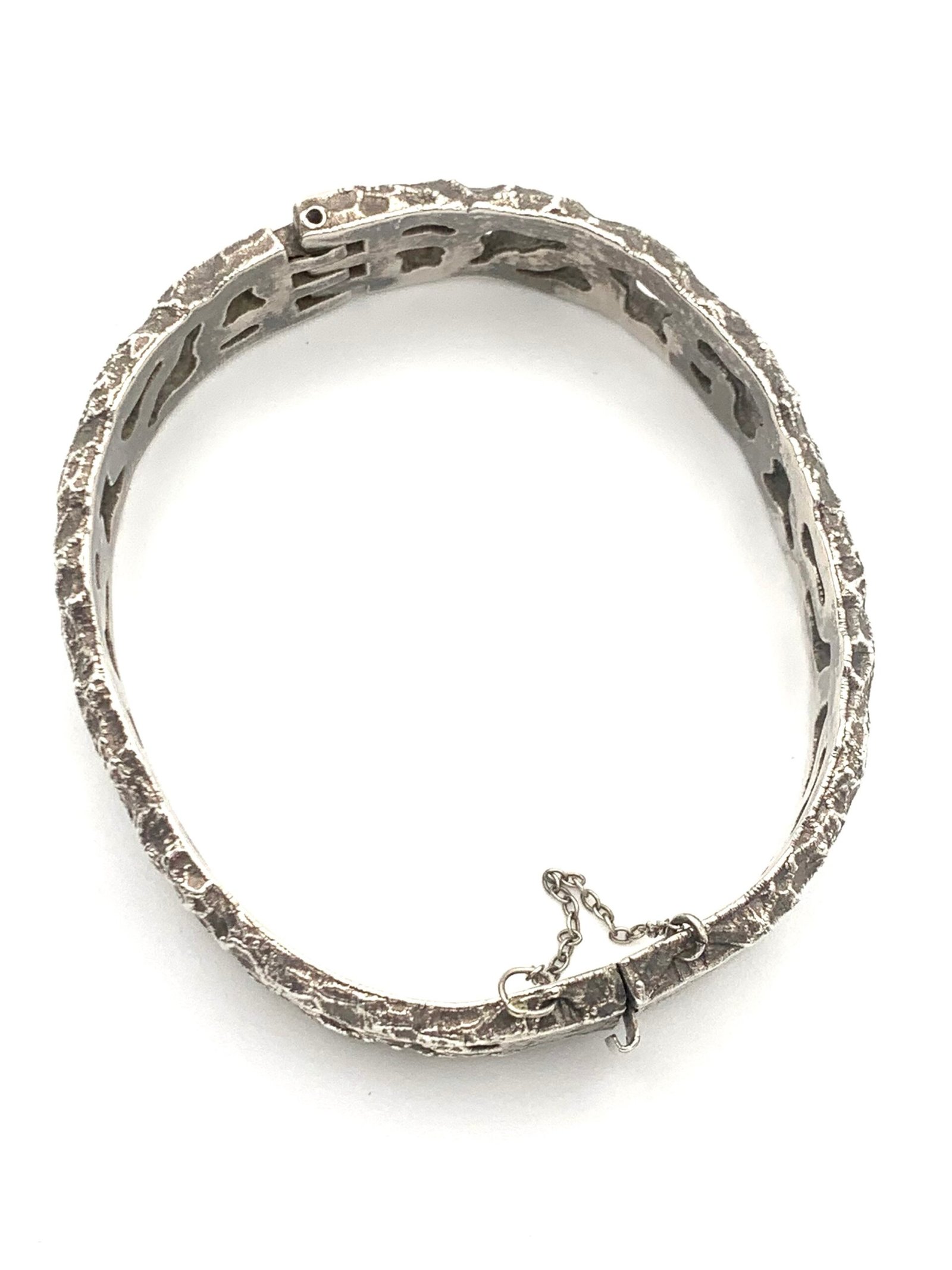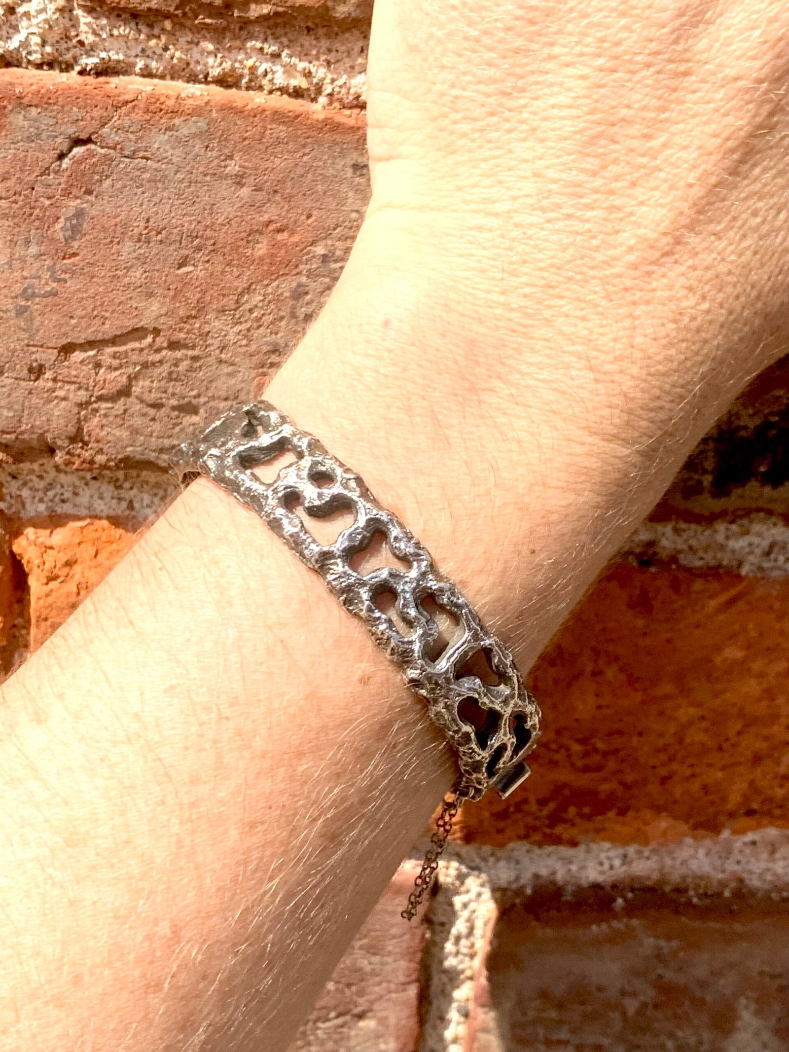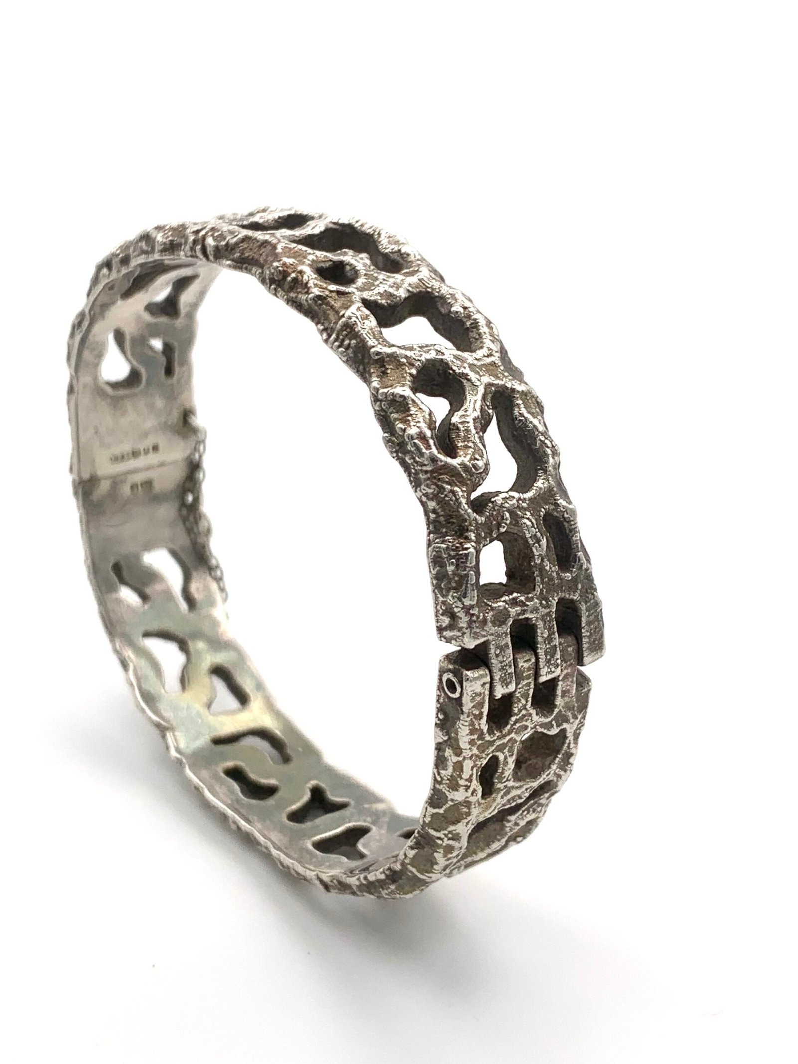 Hollow silver in a pierced, textured form